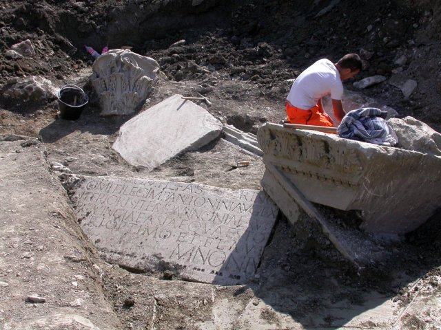 The biggest and, for some aspects, astonishing findings are the perfectly preserved marbles of a huge burial monument probably hidden by a flooding. For this reason archeologists think that the monument is just to be re-assembled because all the capitols, columns and walls are just fallen into the mug of the flooding. But this is not the only surprise: from the epigraphs archeologists have discovered that the