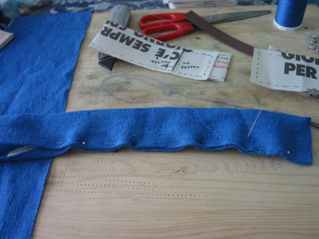 The most difficult step is to attach them on the gilet. It is an hard work because it is requested strongness in the fingers while passing trough 2-3 centimeters of variuos material, but overall pteryges must be "in line"! And, pay attention to make the same and the right and on the left shoulders. It happened to me many many times to attach and remove them because sewn in the wrong position.