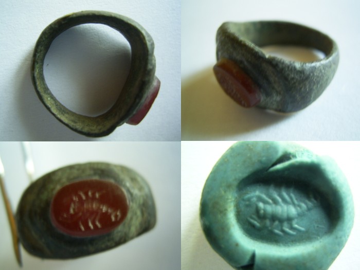 Fig.20 - Varie visuali dell'anello con l'immagine. In pasta azzurra l'impronta del sigillo ricavato dall'anello.