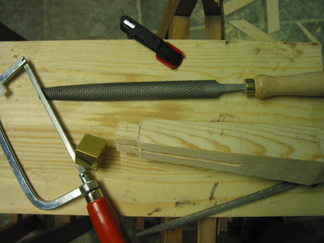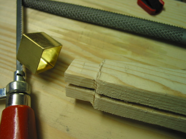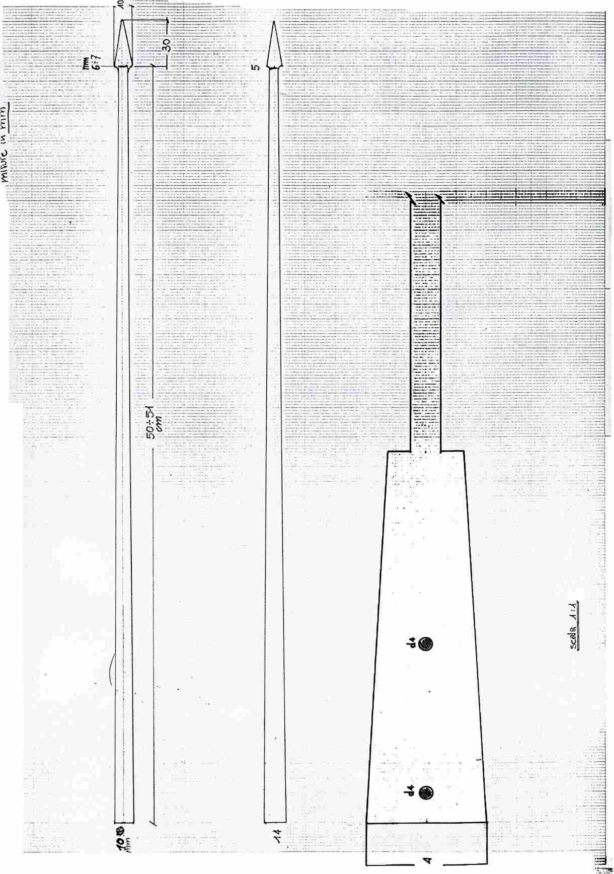 Dettaglio dell'inserzione del quadrello che serra la testa del manico e la base dell'asta della punta.