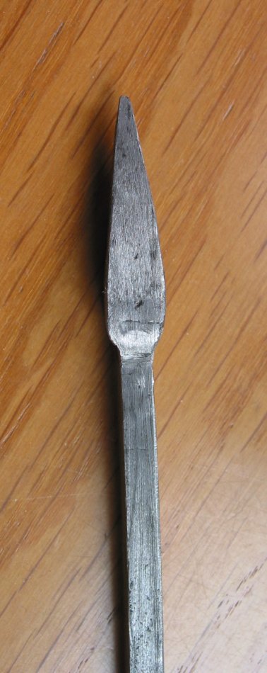 Dettaglio dell'inserzione del quadrello che serra la testa del manico e la base dell'asta della punta.
